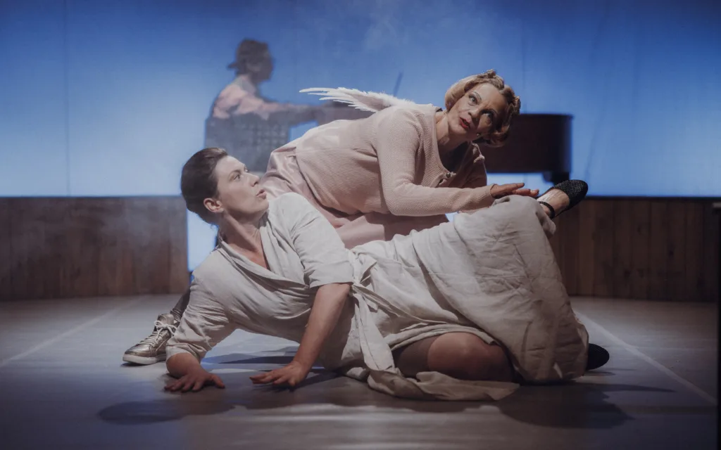 Am amintit de patinoar, de restaurantul Jámbor Tehén, să nu uit de Casa Tineretului Siculus, al 3-lea spațiu în care s-a derulat ediția 2025 a festivalului de dramaturgie contemporană de la Odorheiu-Secuiesc. Renovarea Casei de Cultură, sediul tradițional al Tomcsa Sándor Színház & dráMA, a răspândit festivalul prin oraș. Coșmarul organizatorilor, care au fost siliți să se multiplice / cloneze pentru a asigura logistica la toate cele 3 adrese, a fost șansa spectatorilor, inclusiv (mai ales) turiști. De a descoperi zone necunoscute ale orașului, de a privi / primi teatru în spații neconvenționale, de a fugi de rutină, predictibil, cunoscut.