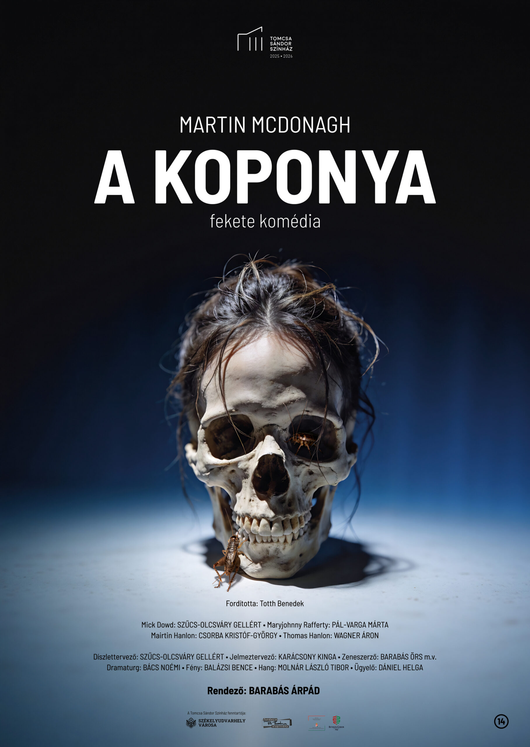 Martin McDonagh A koponya című fekete komédiája sajátos humorral gondolkodik emberi gyarlóságról, tragédiákról, titkokról. Megtévesztő dramaturgiája nem engedi el a néző figyelmét, miközben sorsokról, viszonyokról és megbocsáthatatlan hibákról jelent ki egyetemes igazságokat. Vagy mégsem?