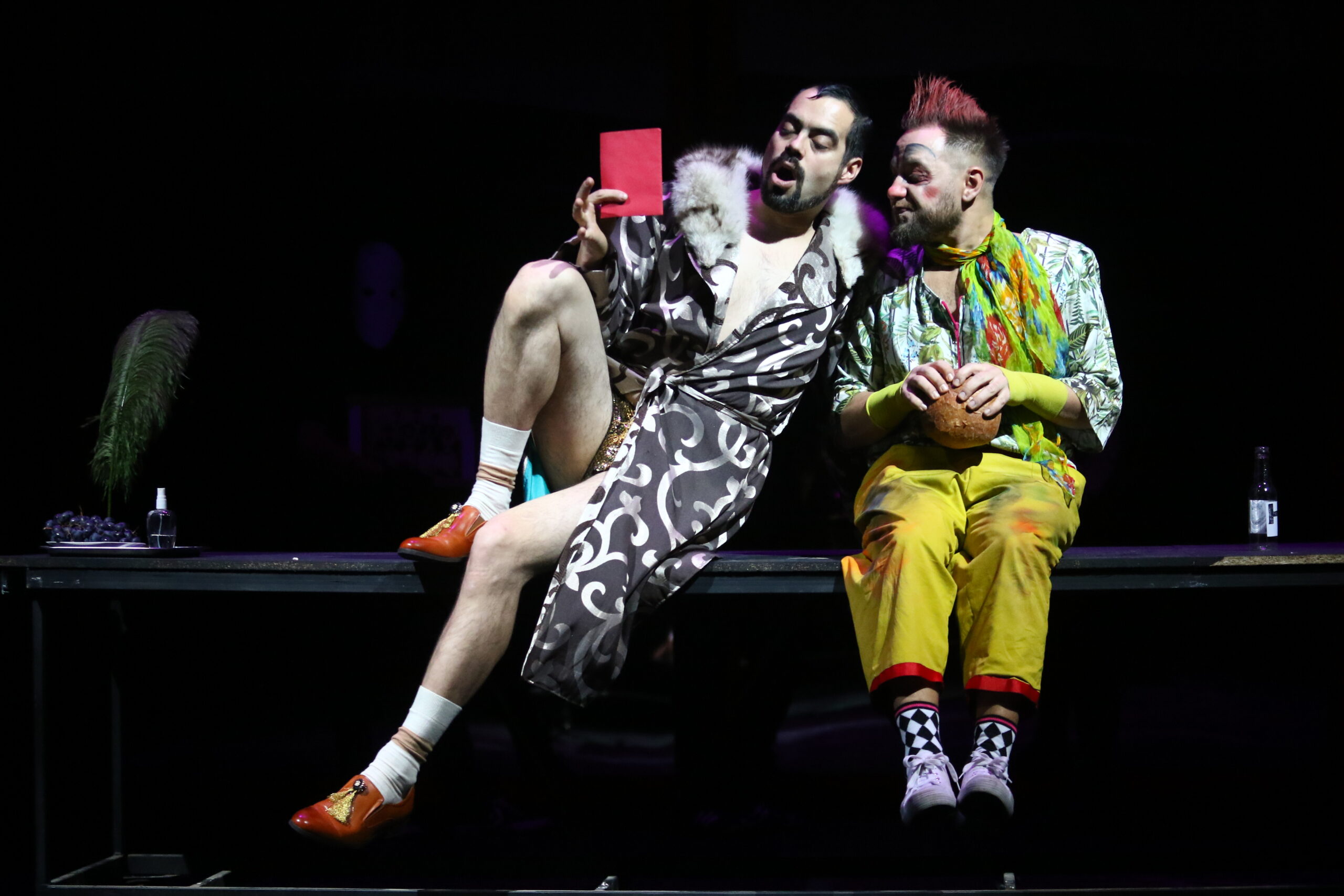 Mi történik, ha négy hírnév-hajhász férfi fogadalmat tesz az önmegtartóztatásra? Valószínűleg semmi, hacsak a fogadalom megtétele után, négy nő meg nem érkezik a kastélyba… Navarra királya és három kísérője a celebek mámorával hozza meg az új törvényt, miszerint egyetlen élvezet lesz elfogadható csupán: a tanulmány öröme. Ennek megtartásához a legfontosabb intézkedés kitiltani a nőket az udvarból. A francia királylány és három udvarhölgye, azonban méltó ellenfélnek bizonyul a hiú ember küzdelmében. Ezek után már csak Shakespeare különleges verbális poénjaira épülő szövege, valamint korunk szerelmi küzdelmeit idéző verselései tehetik még izgalmasabbá, az így kialakuló bonyodalmakat. Előadásunk szövege a Mészöly-fordításból építkezett, miközben mindvégig figyelemmel követte az eredeti szöveg textuális és környezeti szándékait. Ebből a világból alakult ki egy mához köthető szövegkörnyezet, ami, reményeink szerint, sikeresen ülteti át azokat az érzéseket, formulákat, amelyek ugyanazokat fogják jelenteni a befogadó számára, mint a korhű szöveg, saját közönségének.